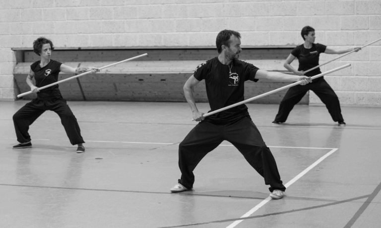The staff is the most commonly used long weapon in Kung Fu. It doesn’t have a blade (like swords) or a sharp tip (like spears), but its length offers a long range distance for striking and keeping the opponent away. The simplicity of its shape makes it a weapon easily suitable in everyday life. Every object with a long stick can become a staff (a broom, a curtain rod, …). Staff is a must for those who want to learn Chinese martial arts. In our association we learn how to handle the staff with rotation techniques and different Taolu (choreographies). We also cover applications with a partner to learn how to hit and to block with a staff.